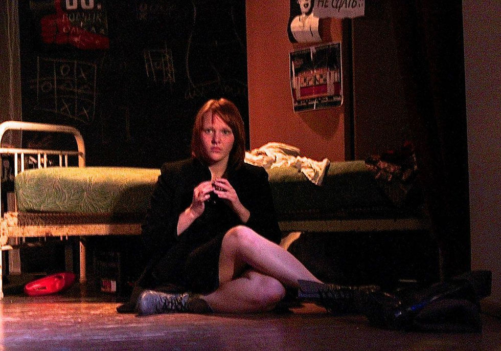 И в обеих постановках молодые актеры чрезвычайно органичны, естественны. И если для «Солдатиков» это естественно: играют-то профессионалы, то совсем юные артисты раквереского «Яблока» просто поразили. Причем два из них, Катя Молчанова и Никита Гикало, еще учатся в гимназии, а третий, Андрей Глуханкин, по профессии бухгалтер. Режиссер Ольга Жулай тоже не имеет театрального образования, но это не помешало ей сделать глубокий и проникновенный спектакль.